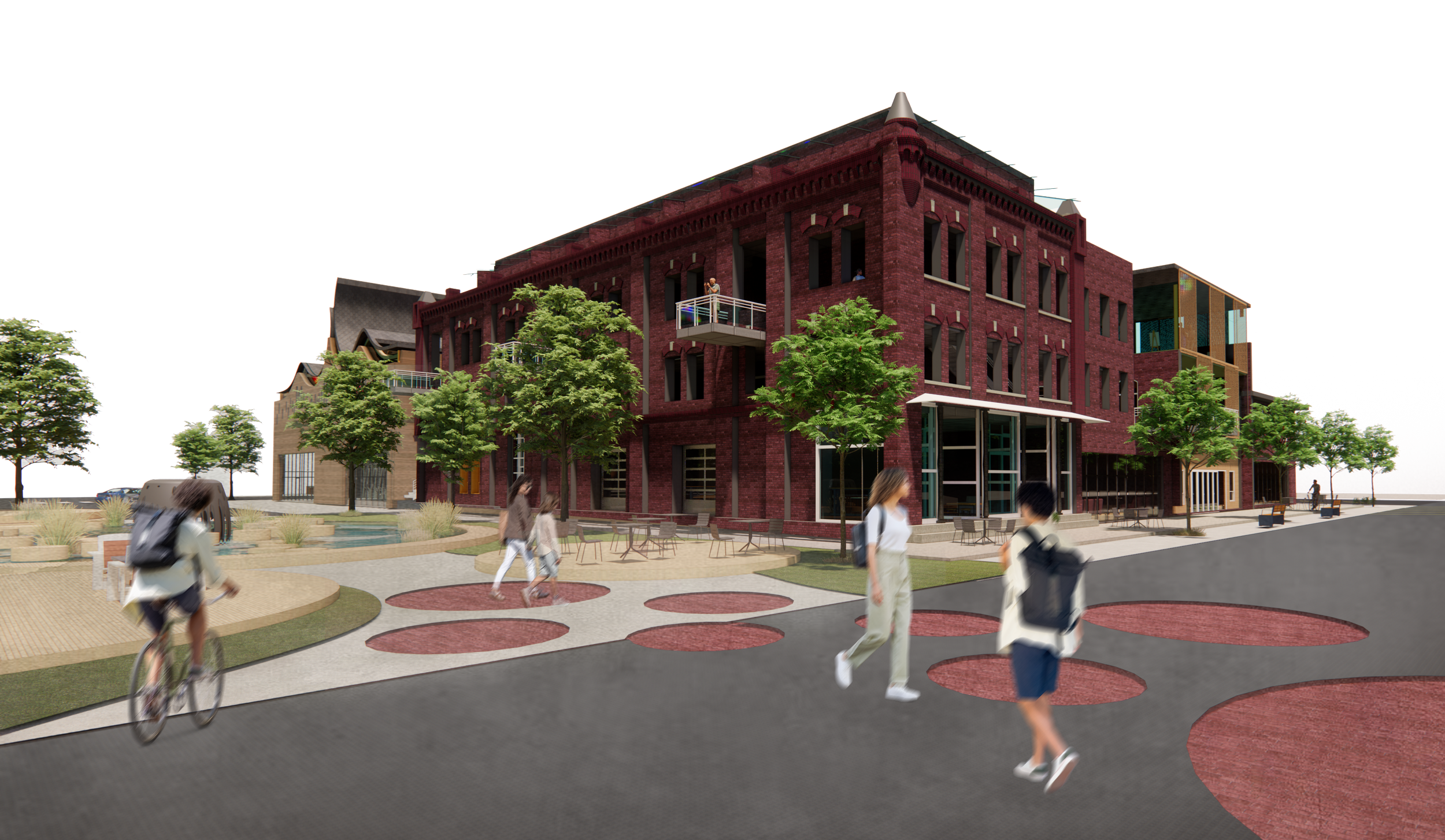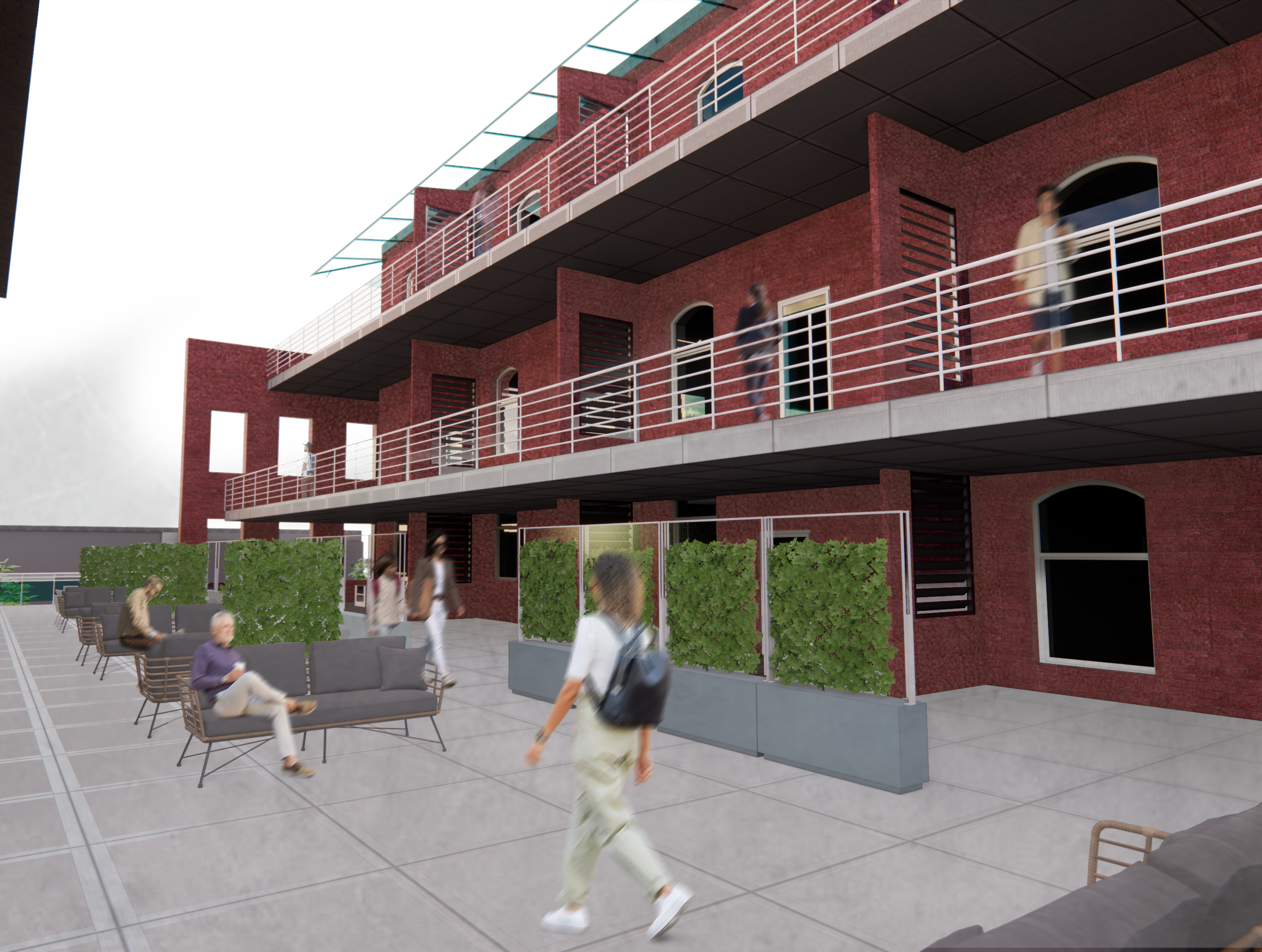 - Required program included designing a spiritual space, courtyard, coffee shop, bakery, retail spaces, art gallery, convenience store, bar, restaurant, disability center, gym, and at least fifteen apartment units.